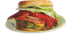 Oignons, cornichon, moutarde, mayo, ketchup, fromage, tomate et laitue