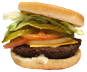 Fromage, bacon, relish, moutarde, oignons, tomate et laitue